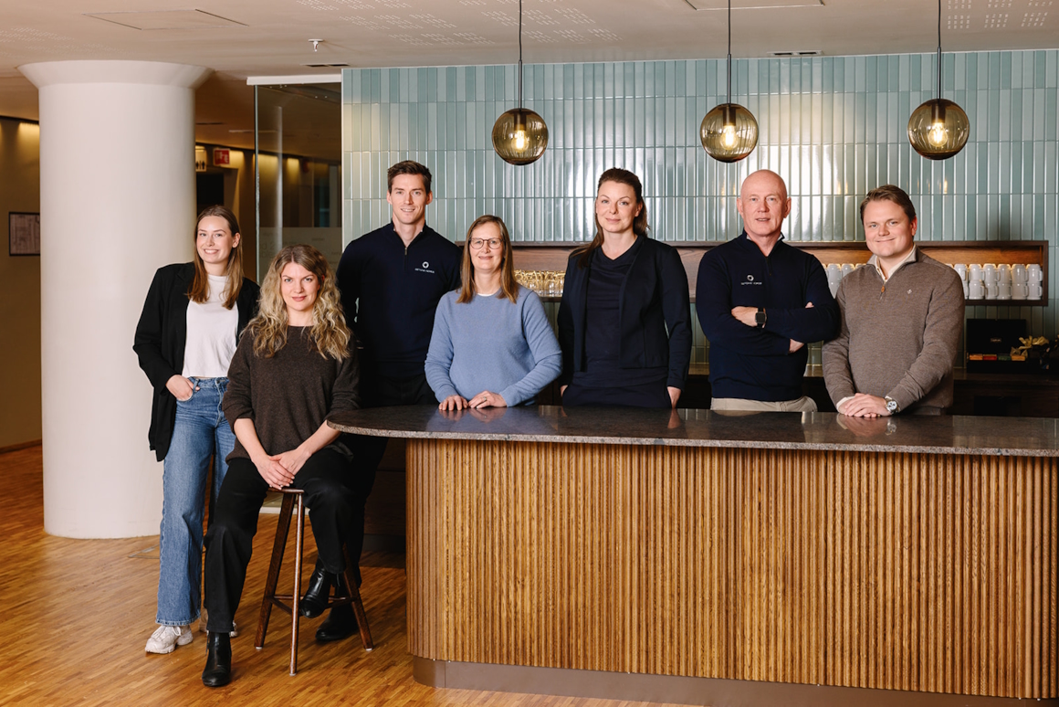 Administrasjonen i Betong Norge; Stine Ekornåsvåg, Silje Synnøve Skadal, Thomas Bø, Nini Mollatt, Thale Kalbakk, John-Erik Reiersen og Jørgen Bruserud Elstad. Foto: Moment Studio